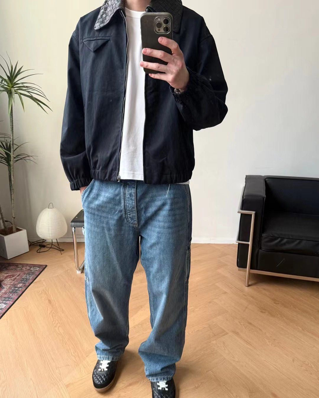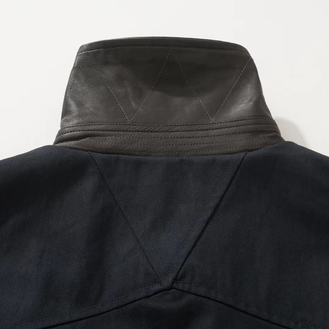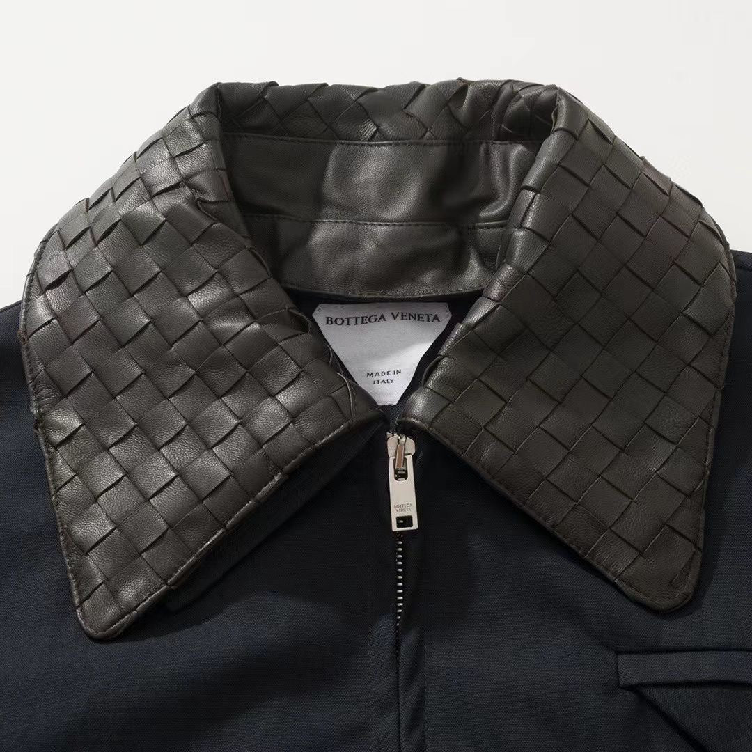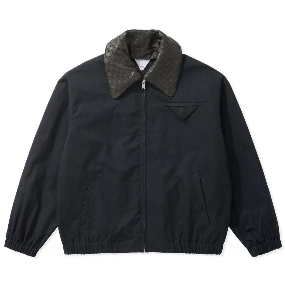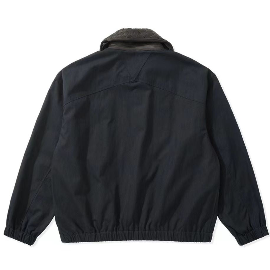 ג׳קט שחור המעוצב בצווארון עור קלוע בגוון חום