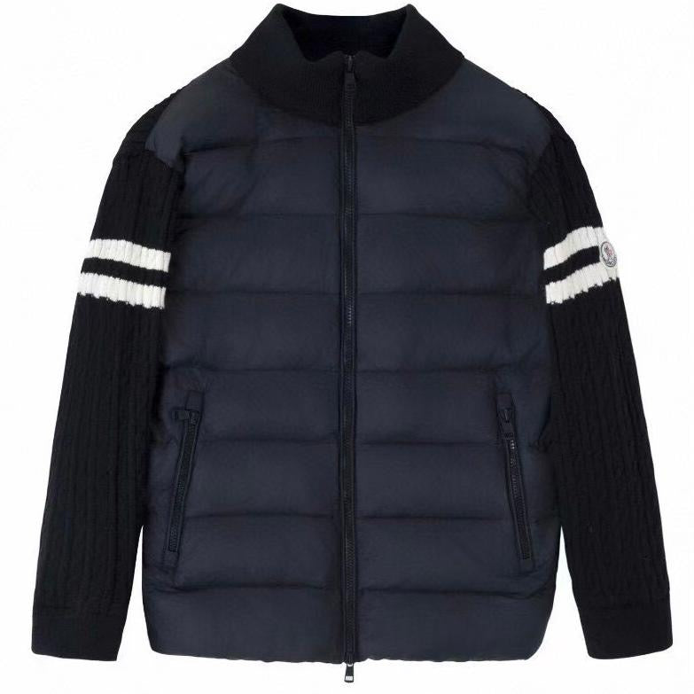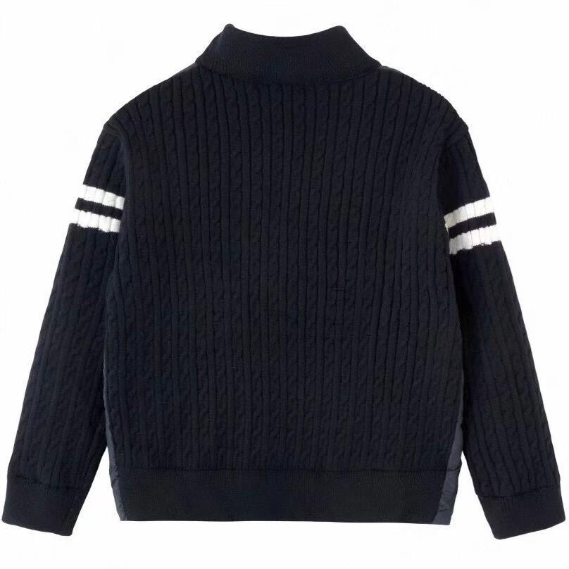 ג׳קט סריג משולב עם פוך מקדימה בצבע כחול כהה