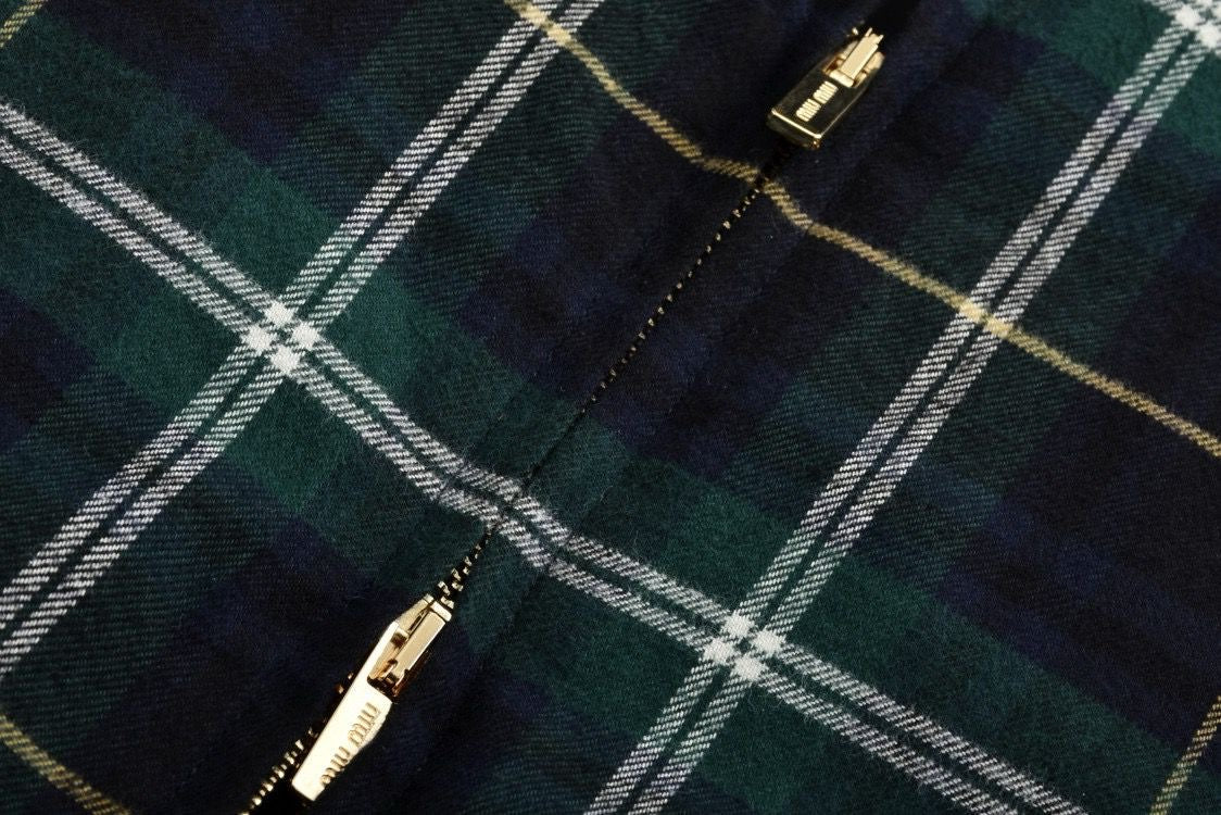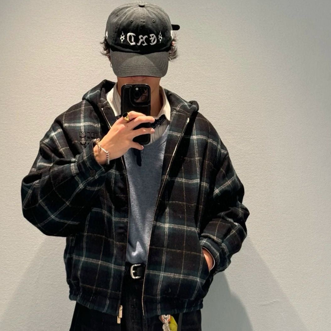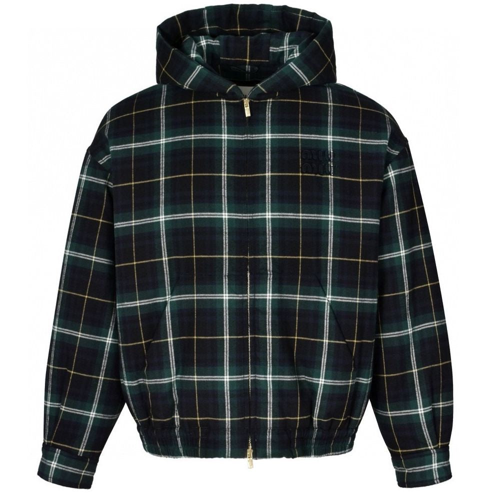 ג׳קט משבצות בגוונים ירוקים עם גומי בסיומת וקפוצ׳ון