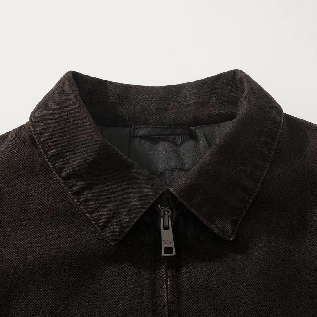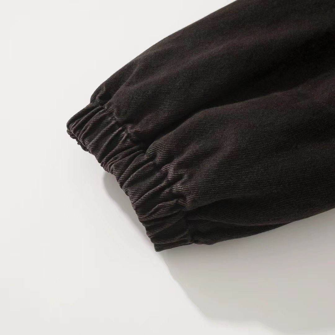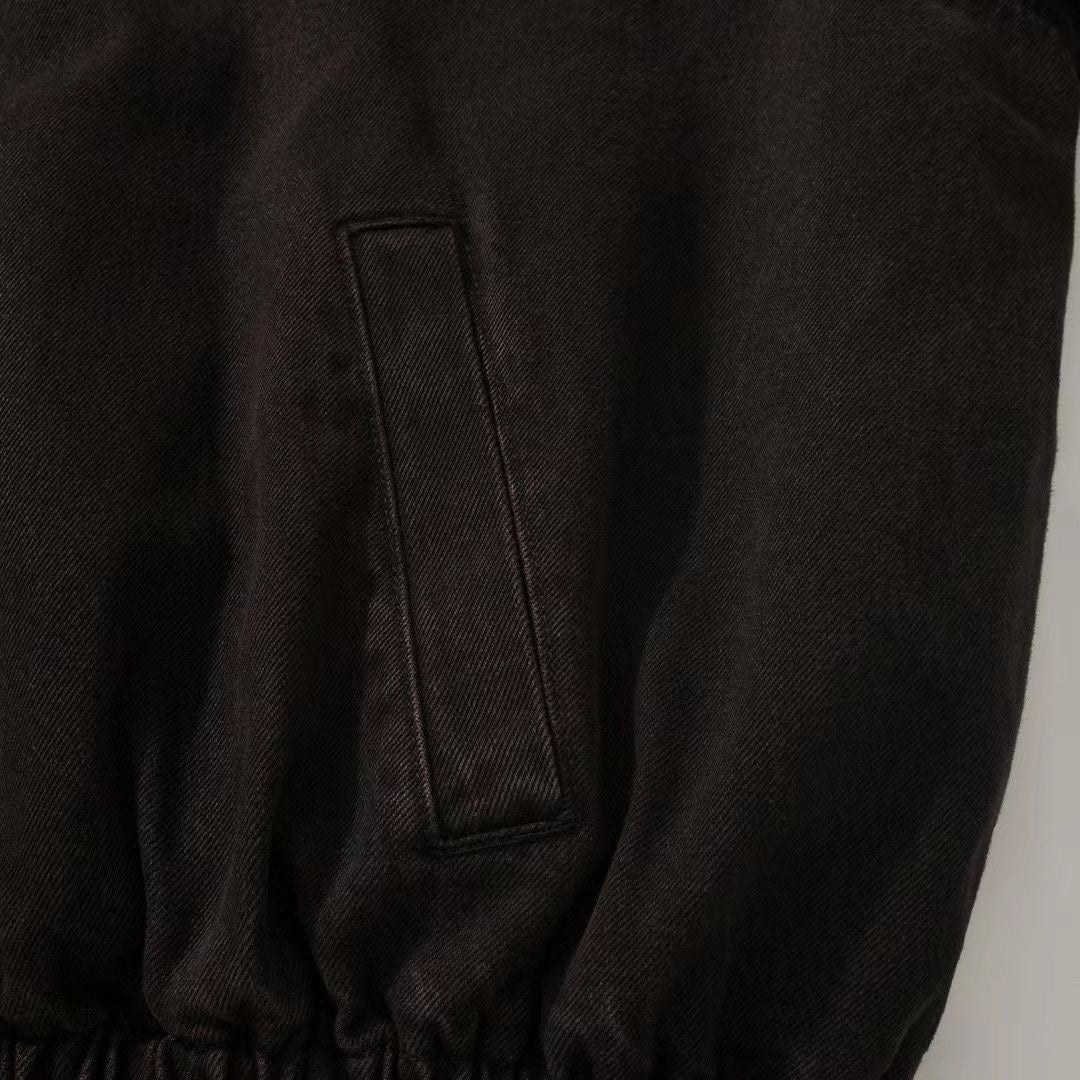 ג׳קט ג׳ינס קצר עם צווארון בגוון חום אפרפר