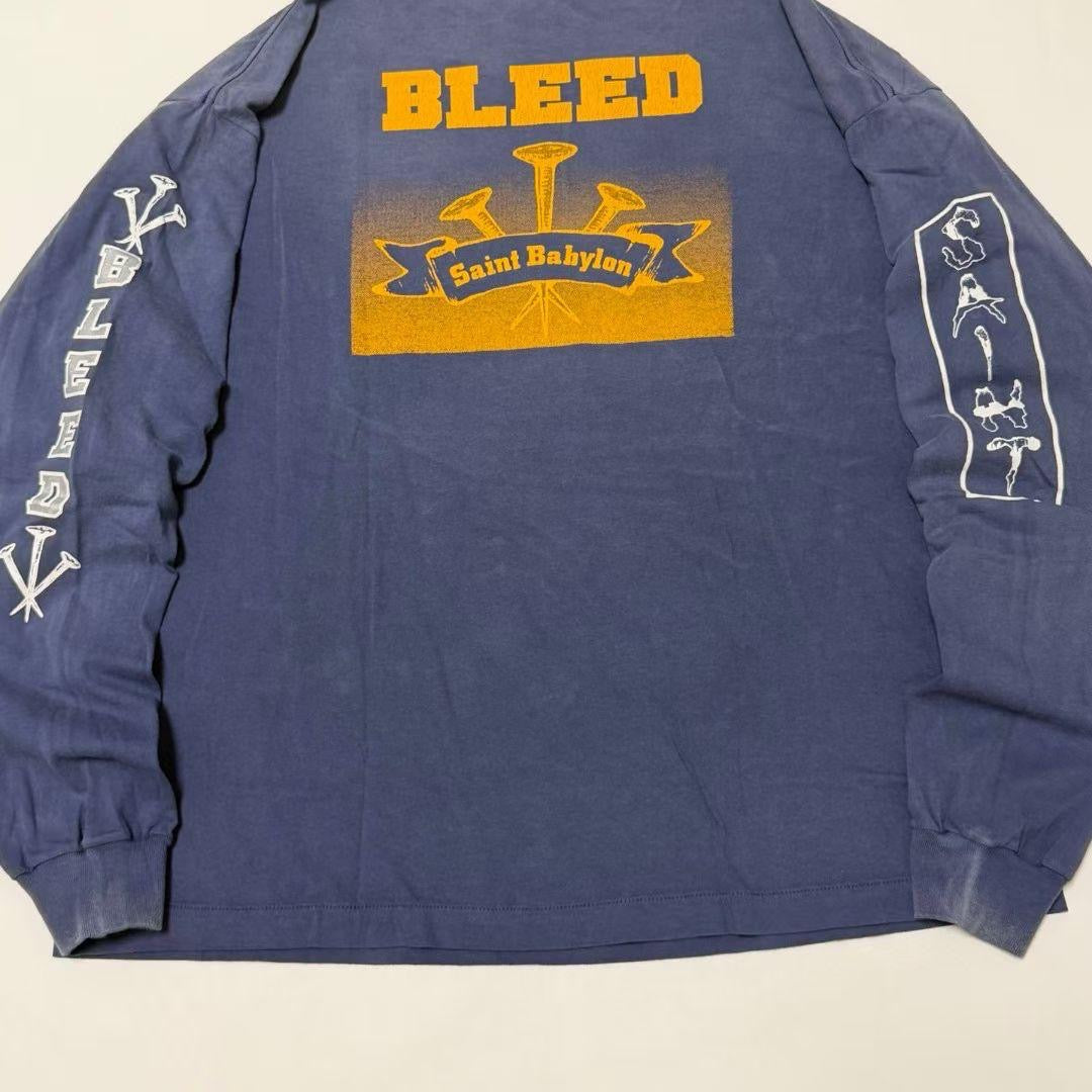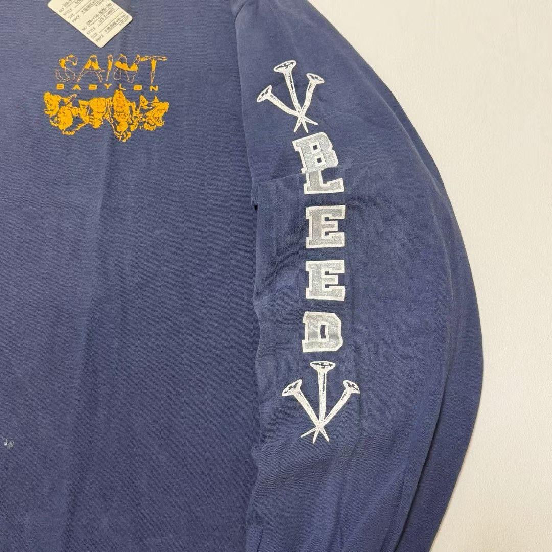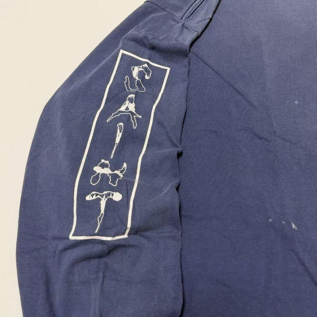 סווטשירט בגוון כחול מעוצב בלוגו צהוב בצד ופרינטים לבנים על השרוולים