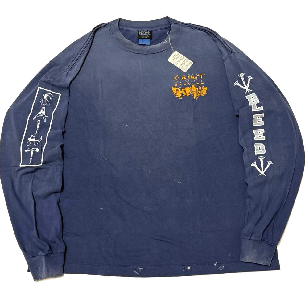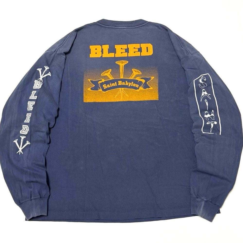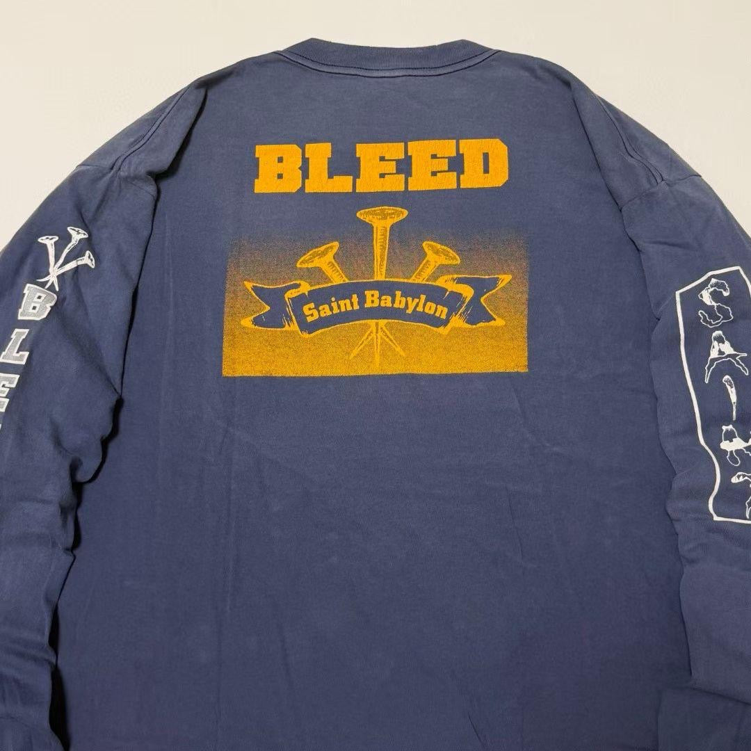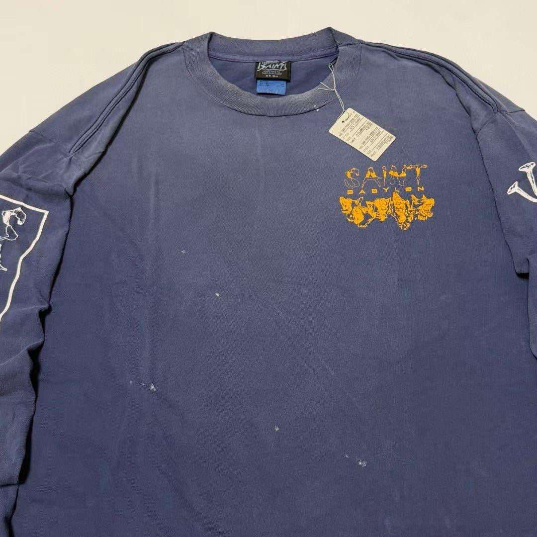 סווטשירט בגוון כחול מעוצב בלוגו צהוב בצד ופרינטים לבנים על השרוולים
