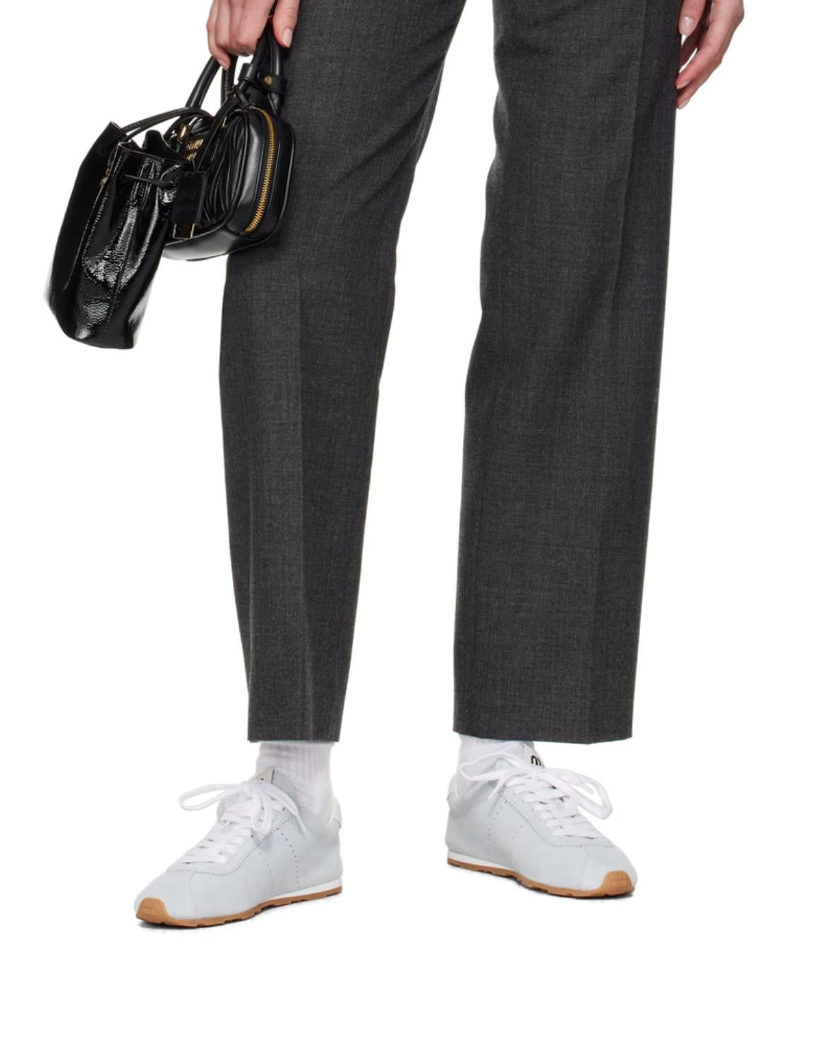סניקרס מעור הפוך בגוון אפור בהיר, עם סוליית גומי חומה