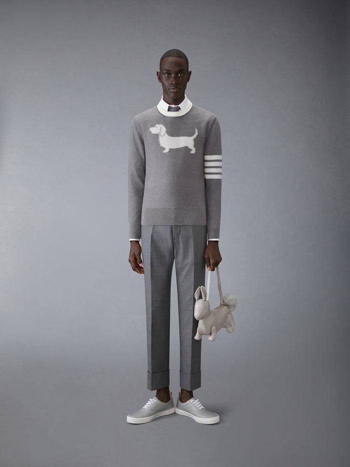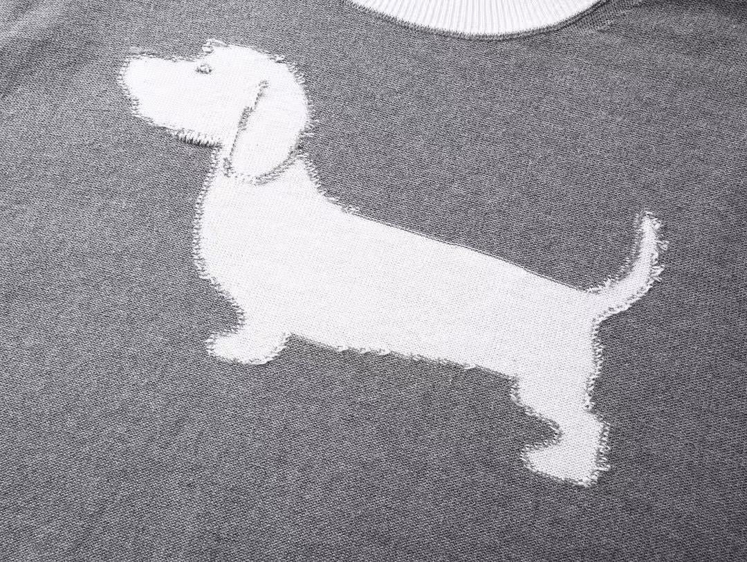 סריג בגוון אפור עם איור הטקסה המפורסם של המותג