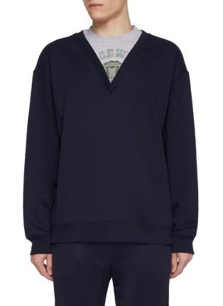 סריג בגוון כחול כהה עם חלק אפור