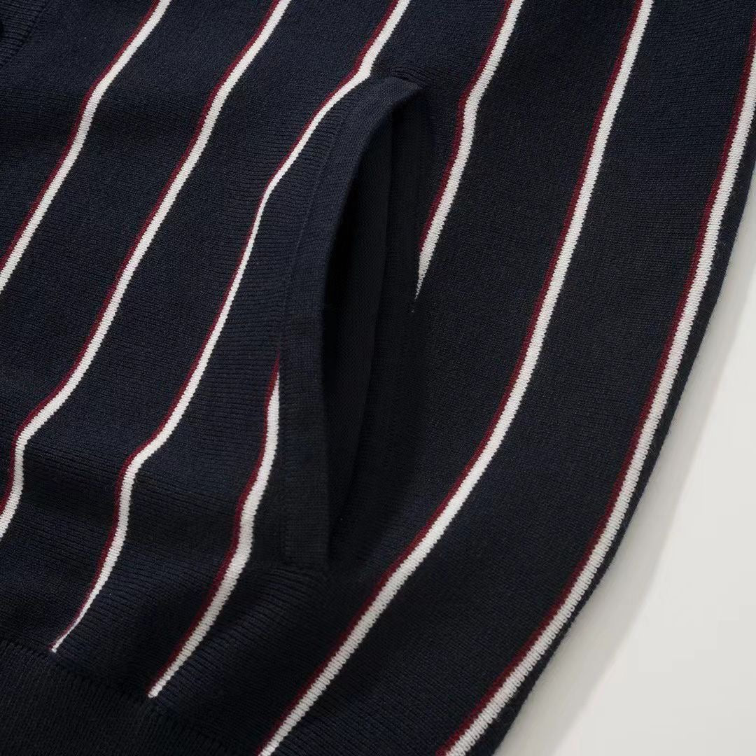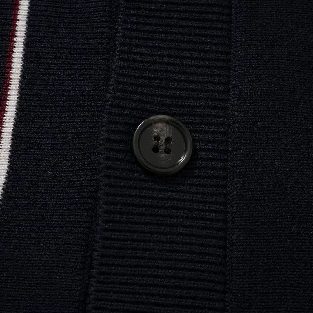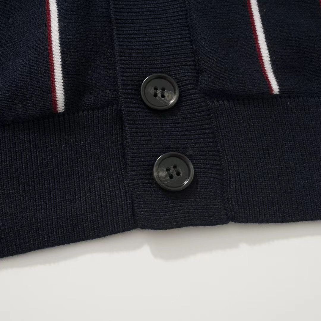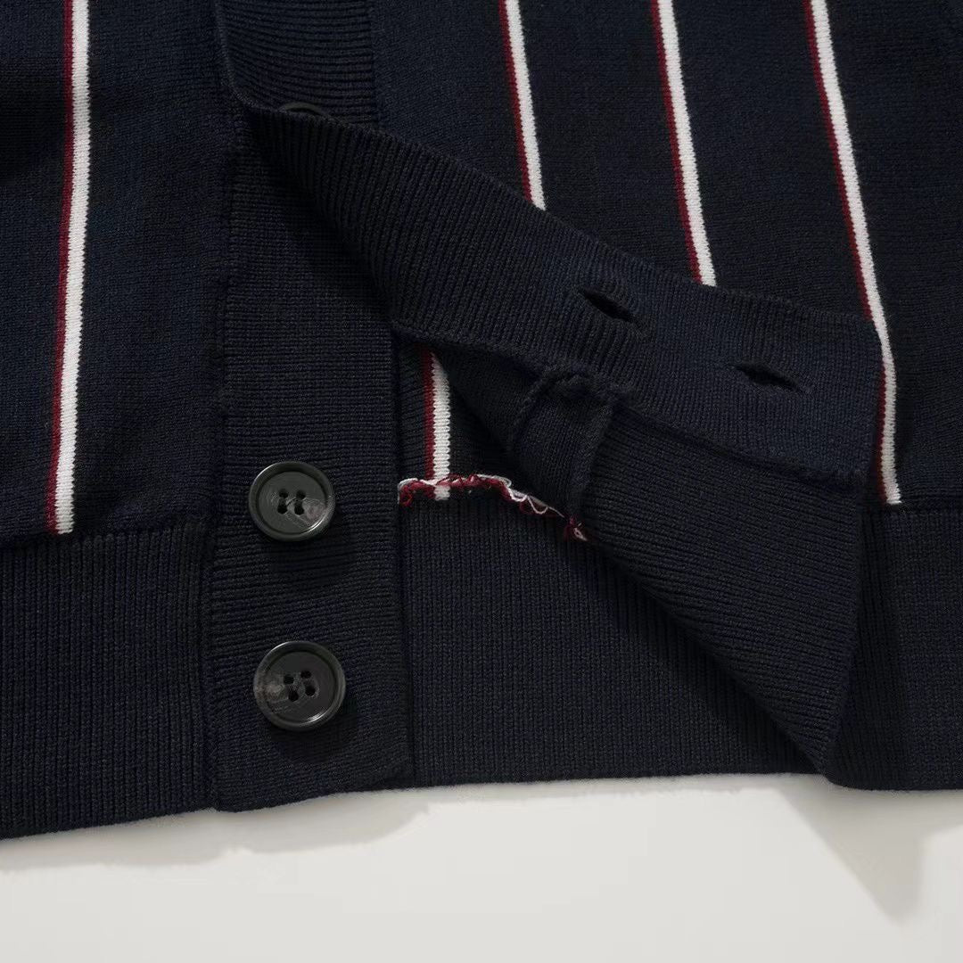 קרדיגן מכופתר בצבע כחול כהה עם פסים לבנים ואדומים