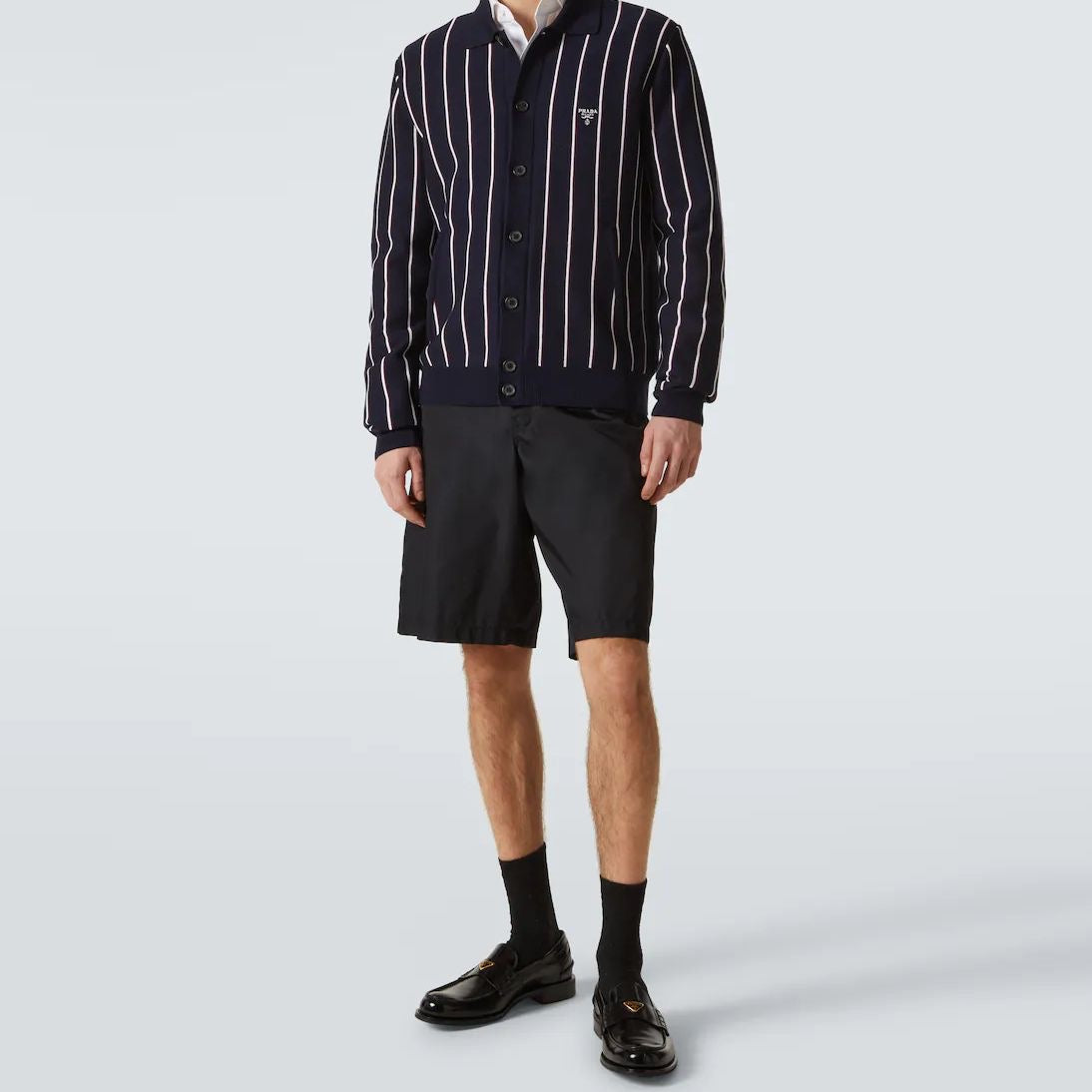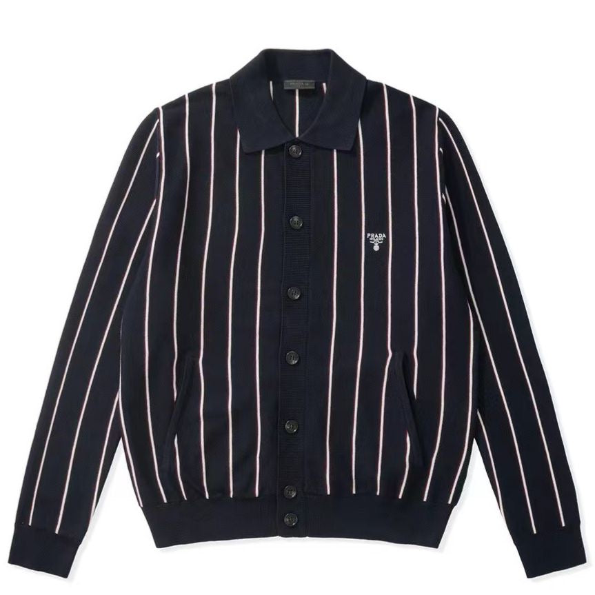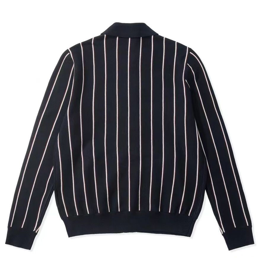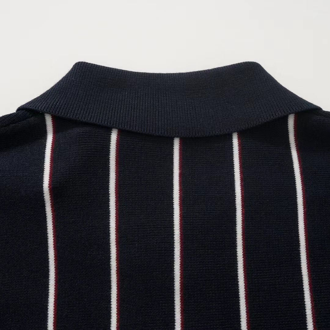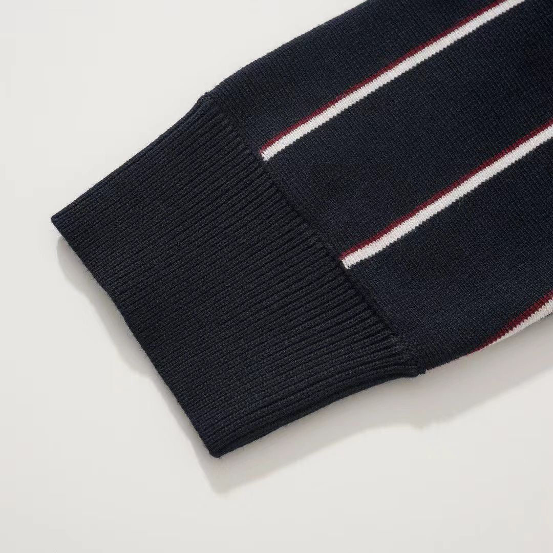 קרדיגן מכופתר בצבע כחול כהה עם פסים לבנים ואדומים